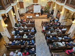 Le temple sous la neige, un repas partagé chaleureux dans la salle annexe, une belle conférence sur la …