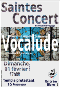 Dimanche 1er février 2028 à 17h au temple de Saintes. Entrée libre