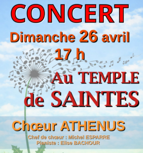 Dimanche 26 avril à 17h au temple. Libre participation.