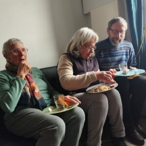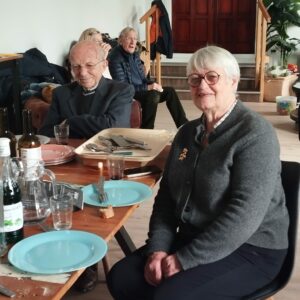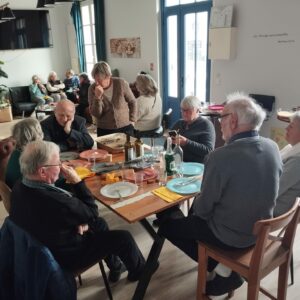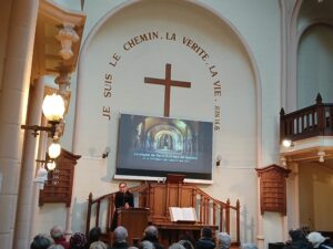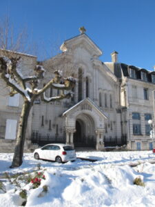 Le temple sous la neige, un repas partagé chaleureux dans la salle annexe, une belle conférence sur la crypte de St Eutrope