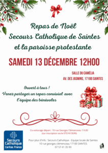 Une réunion préparatoire aura lieu le jeudi 4 Décembre à 10h30 au local du Secours catholique, 10 rue Georges Clemenceau, pour toutes les personnes qui souhaitent participer.